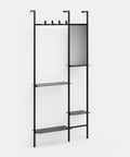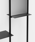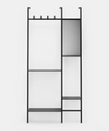קונסולה לכניסה לבית Torik משלבת עיצוב מינימליסטי בגימור שחור מט עם פונקציונליות מדויקת. מבנה הברזל הדקיק יוצר נוכחות גיאומטרית ברורה שמקנה לחלל מראה אדריכלי נקי ומודרני. המדפים המתכתיים בשתי קומות מציעים שטח אחסון ואירוח לספרים, קופסאות או פריטים דקורטיביים, בזמן שהווים העליונים מוסיפים שכבת שימושיות לתליית פריטים יומיומיים. בצד הימני שובצה מראה אנכית באורך 60 ס"מ, כך שניתן לבדוק הופעה רגע לפני היציאה מהבית.